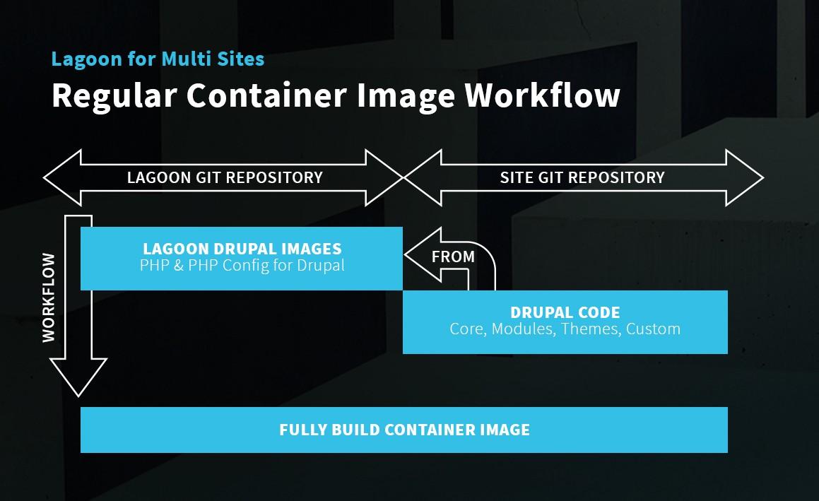 This Drupal code itself can live in any Git repository. It brings all of the core, modules, themes, and custom code. Lagoon will combine the Drupal Code plus the Lagoon Images and build the container image which is then run and orchestrated by Kubernetes.